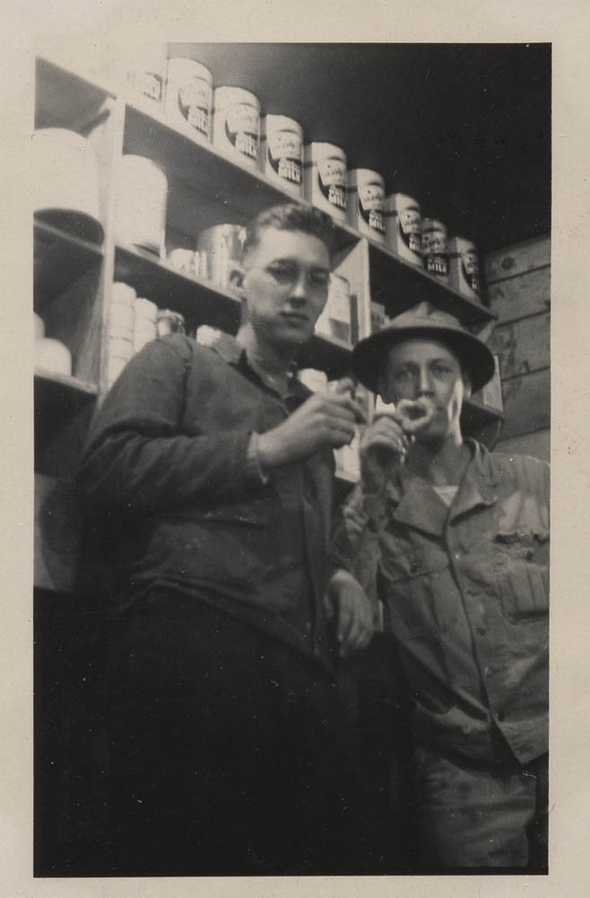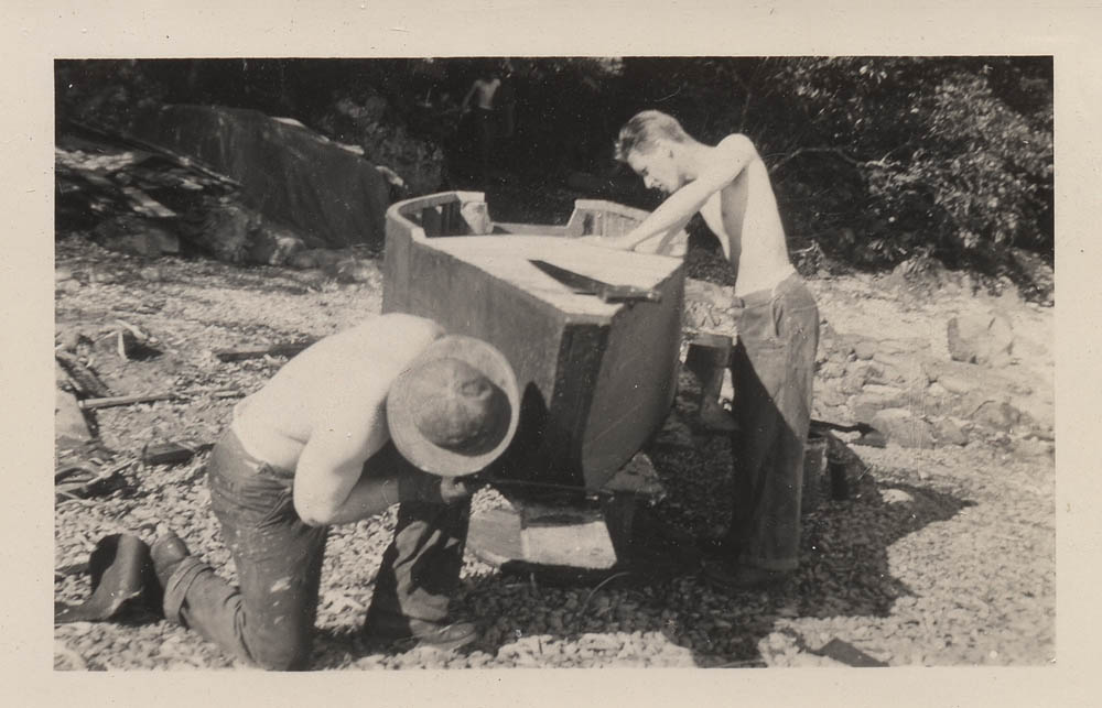 7523 - Working on the boat with the SCR-296 generator shack in the background. |