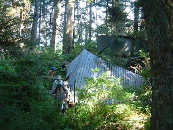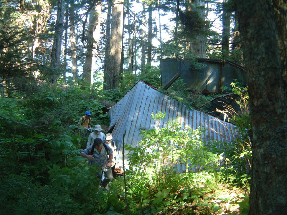 A collapsed generator shack just a few feet from the beach on Abalone Island. |