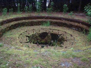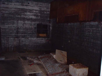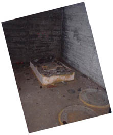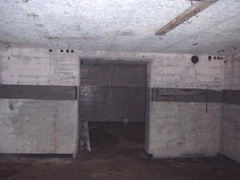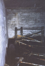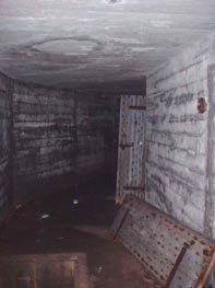Just inside the rear entrance of Battery 292 is a shaft that drops 11 feet to a lower level of the magazine. There are three rooms in the lower level. |