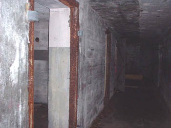 The center corridor looking toward the rear entrance. Note the doorway to the Plotting Room of Battery 292. |
