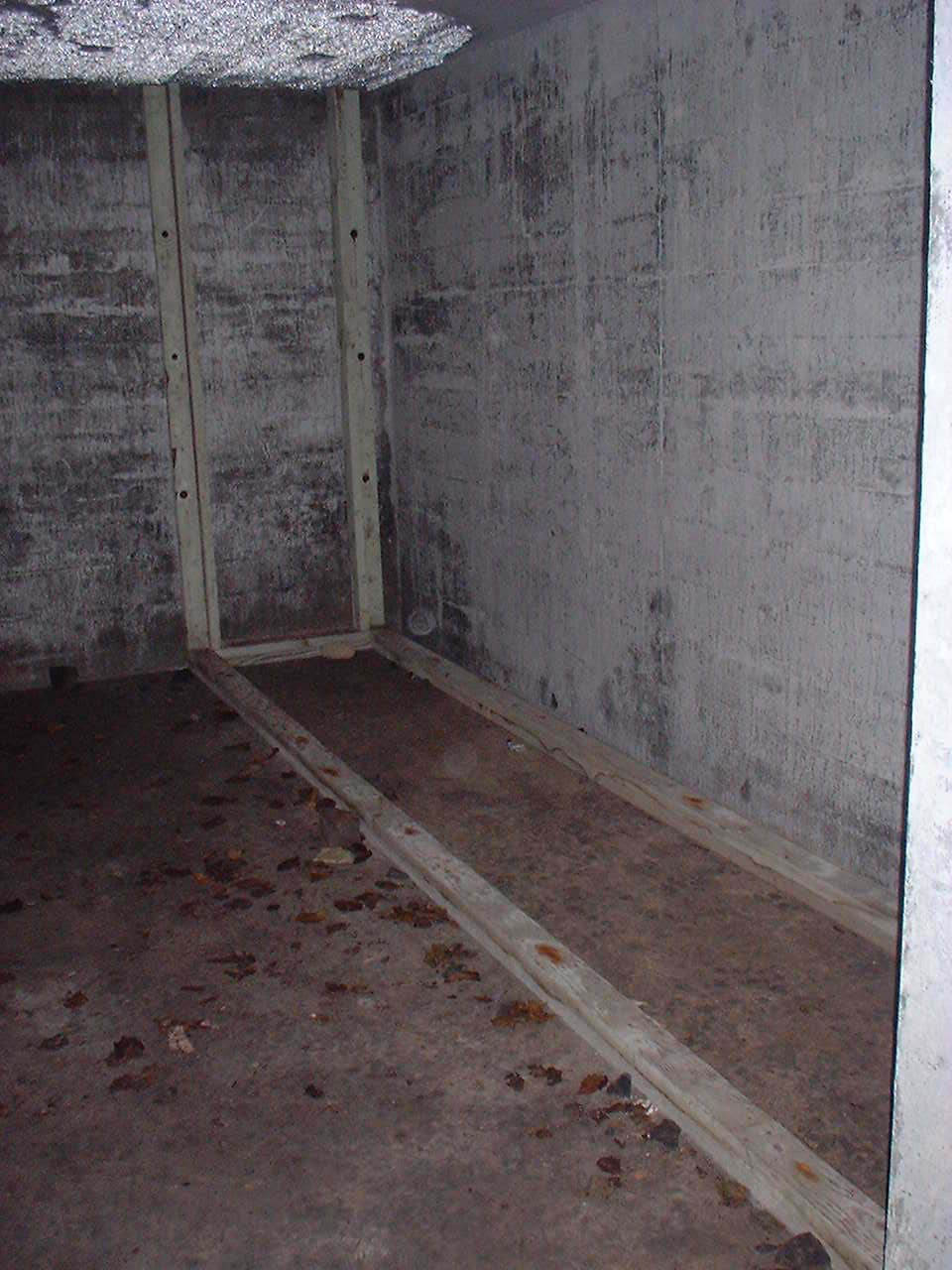 Inside the third room of the lower level of Battery 292. The purpose of these three basement rooms is unknown, though this may be the remains of a cot. |