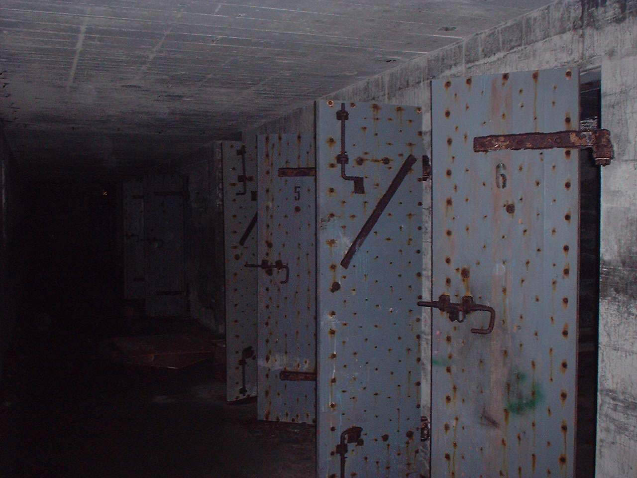 Looking toward Gun 2 inside the front corridor of Battery 292. The doors are to the air compressor room for Gun 2. |