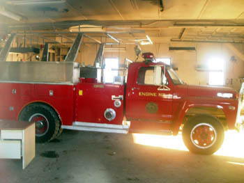 Engine No. 1 of the Sitka Volunteer Fire Department sits inside the Army firehouse. The warehouses and old firehouse were used during the construction of the new Sitka fire station. |