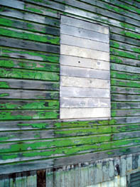 This warehouse clearly shows its original green paint. It will be demolished soon. |