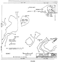 This document shows both AMTB batteries as constructed. The one in BLUE is Whale Island, AMTB battery No. 2. The other battery was at Watson Point. |
