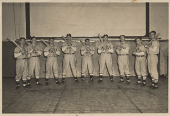 5153 - Another view of a NAS Sitka baseball Team. Note the older FAB (Fleet Airbase Sitka) uniforms on the three men in the front. |