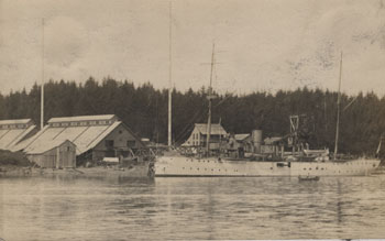 5424 - A Navy ship takes on coal at the coaling station on Japonski Island. This photo is probably from the 1920s. |