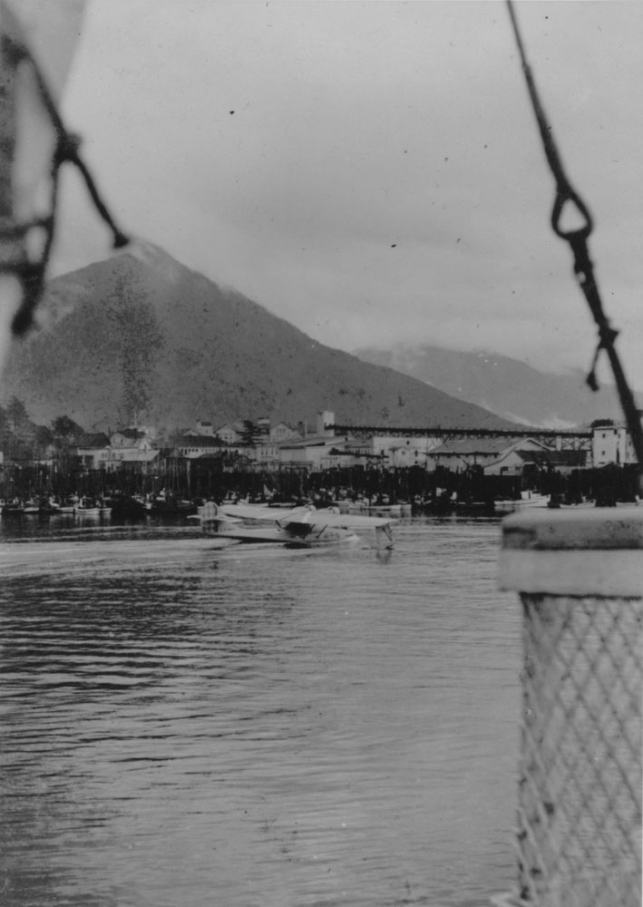 8610 - Here one of the NAS Sitka PBYs taxis in the Sitka Channel. |