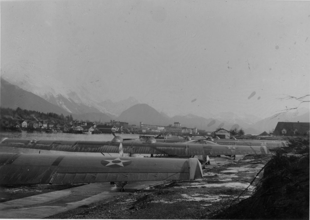 8616 - Here is another view of the PBYs at the NAS Sitka, before the hangars were constructed. |