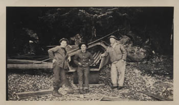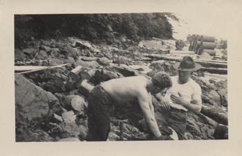 7523 - Working on the boat with the SCR-296 generator shack in the background. |