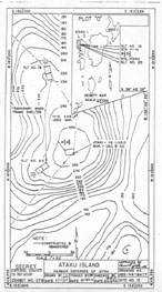 These Army documents are from 1944. The one on the left is the Army plot of the island showing the location of the Base End Station and the two temporary searchlight shelters. The one on the right is a poor quality copy of the Base End Station blueprints. |