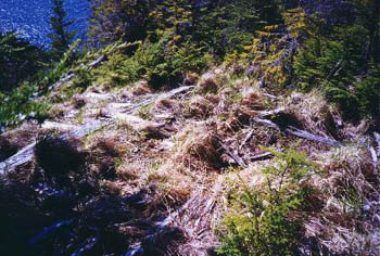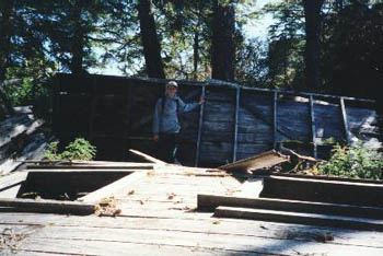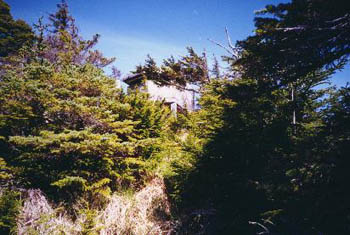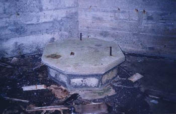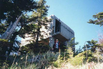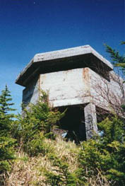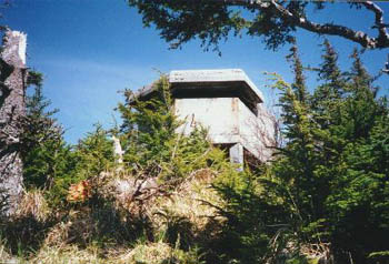This is the front of the B2S2 station. Note the concrete stilts that raise the battery about 8 feet above the top of the hill. (1999) |