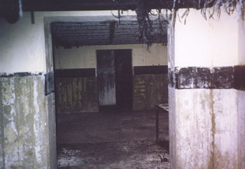 Just inside the rear entrance looking at the power room doors and middle corridor. |