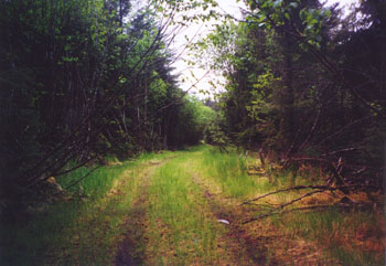 This is the road to Battery 291. There are at least a dozen collapsed Quonset huts and wooden buildings on either side of the road. |