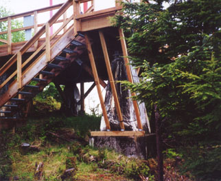 The SCR-296 radar tower supports. The FAA uses the supports for an antenna platform. |