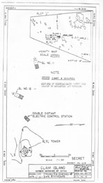 These Army documents are from 1944. The one on the left is the Army plot of the island showing the location of the BS station tower, double DEC, and the two searchlights. The one on the right is the blueprints for the Base End Station tower |