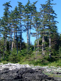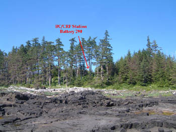 Battery 290 as seen from the beach at Shoals Pt. The BC/CRF station is just barely visible in the trees. |